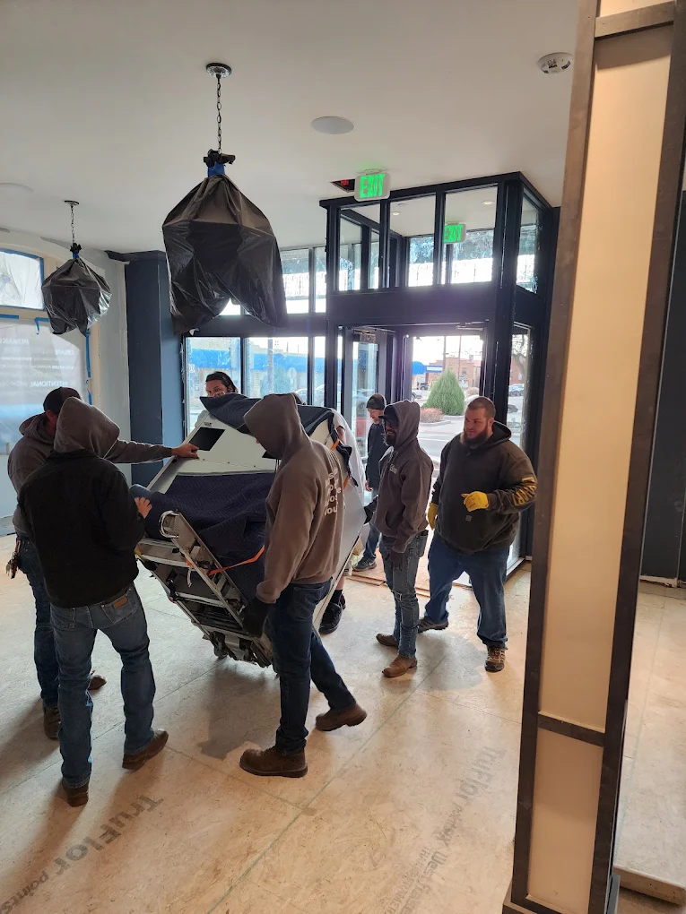 Glass storefronts, custom millwork, retail fixtures — the heavy, awkward, expensive stuff that needs to be in the building before the doors can open. We've helped open boutiques, salons, restaurants and offices across Fremont County, almost always after-hours so the sidewalk's clear by morning.