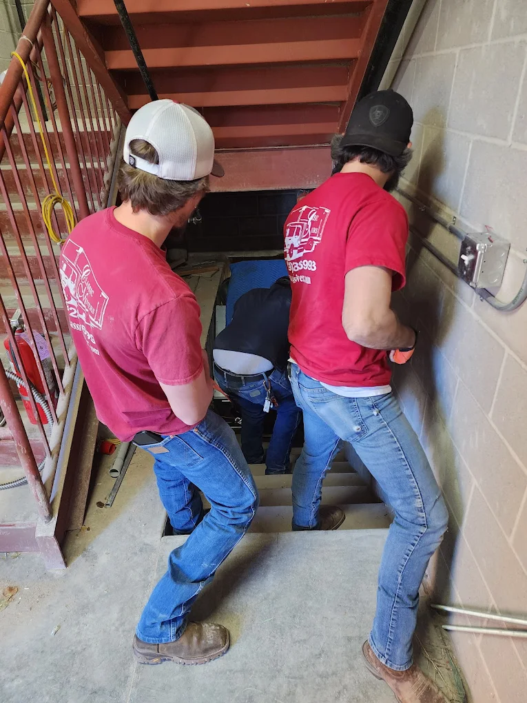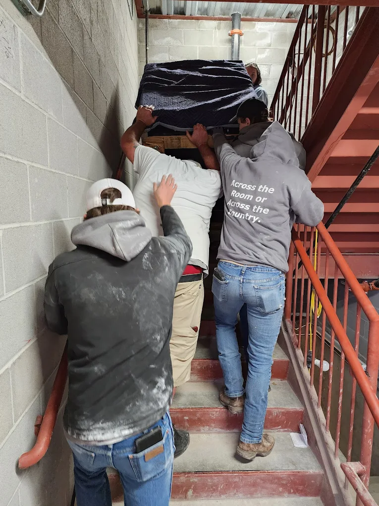 Tight basement stairs, painted brick walls, a 600-pound piano you do not want to drop. This is the moment most movers tap out. Our guys have a quiet little choreography for it — one calls the count, two carry the weight, one watches the wall. Nothing dramatic. Nothing dropped. Ever.
