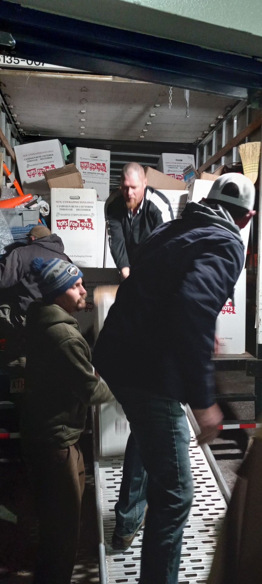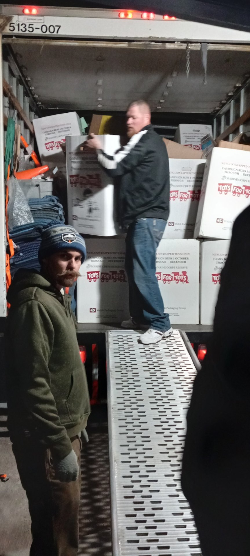 Every December the trucks get loaded up with something different: thousands of unwrapped toys for the Marine Corps Reserve Toys for Tots drive. Gabe, Jesse and the crew run the routes after hours, off the clock. It's the move we look forward to most.