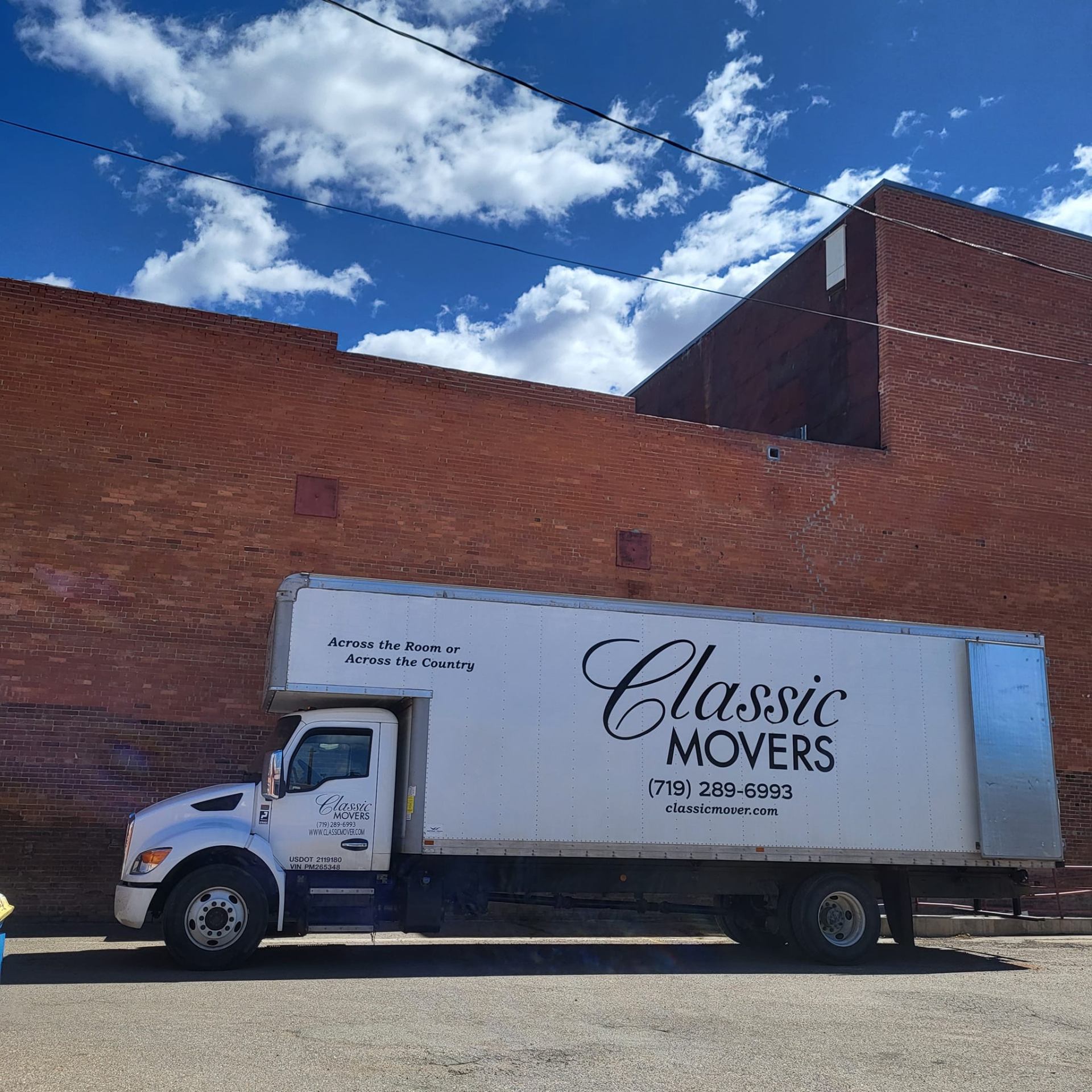 The white Classic Movers trucks roll out of 510 Main St. Pads, straps, and a crew that hustles.